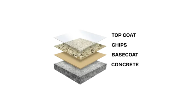 After the floor is properly prepped, our experienced team will begin the application process. We start by rolling on the epoxy base coat in your selected color. The base coat will be applied to your entire floor and stem walls (if requested). We then broadcast the selected chip color onto the epoxy base coat and let the materials cure for 24 hours. Our team will return the following day to scrape the entire floor smoothing out the coating and removing any excess chips. This will create a smoothed floor with a slight texture for grip and durability. Our team will then roll on a clear polyurea sealing coat which provides a nice finishing gloss and seals the epoxy coating for extra durability and longevity.